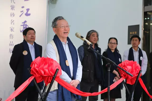 开幕前,张凌浩介绍了出席开幕式的13位参展大师,分别有徐秀棠先生、汪寅仙先生、顾绍培先生、毛国强先生、鲍志强先生、曹亚麟先生、吴鸣先生等等,其中8位为国家级紫砂大师。
