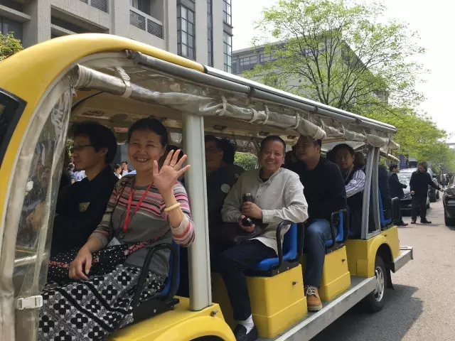大师们坐小黄车逛校园景色