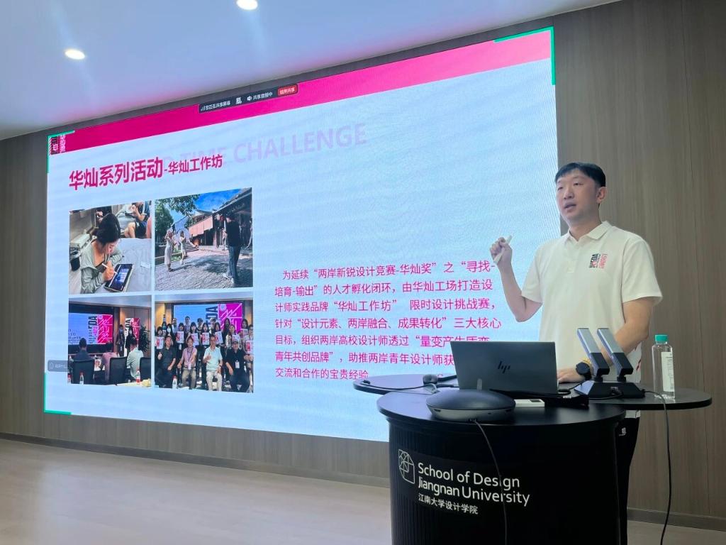 10月13日下午,第十届两岸新锐设计竞赛·华灿奖校园宣讲会在江南大学设计学院成功举办。江南大学设计学院党委书记王维青、党委副书记江琳娜等院领导出席活动,华灿工场项目总监刘宇轩代表组委会进行宣讲,活动共吸引线上、线下共600余名高校师生及青年设计师参加。
