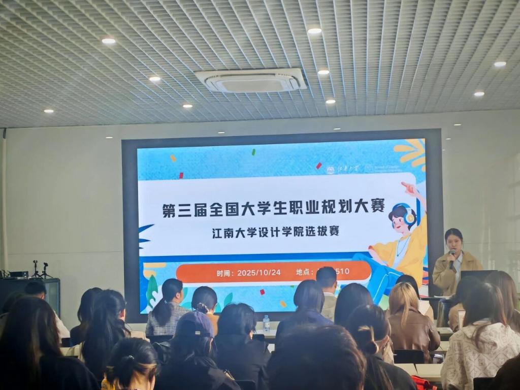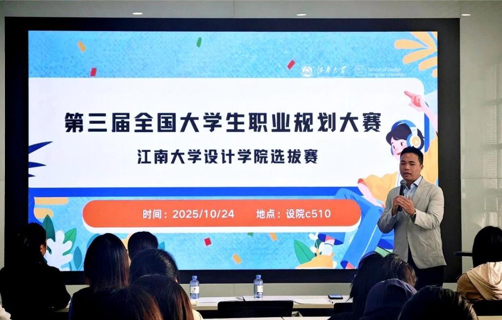 为加强设计学院生涯教育和就业指导,增强大学生生涯规划意识,促进毕业生高质量充分就业,2025年10月24日,江南大学设计学院举办第三届全国大学生职业规划大赛学院选拔赛,比赛由珠海格力电器股份有限公司资深工业设计师喻康以及各年级辅导员担任评委,就业辅导员张凌雁主持。