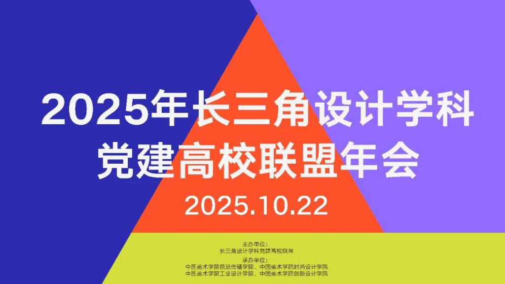 10月22日,党建领航:长三角设计学科协同创新与高质量发展——2025年长三角设计学科党建高校联盟年会在杭召开。会议由联盟轮值主席单位中国美术学院视觉传播学院、时尚设计学院、工业设计学院、创新设计学院承办,中国美术学院党委副书记孙旭东,中国美术学院组织部,承办学院相关负责人,联盟各单位党委书记、党委副书记、党支部书记、团委书记、专职组织员、辅导员、教师代表等参会。中国美术学院时尚设计学院党委书记李昭主持年会。