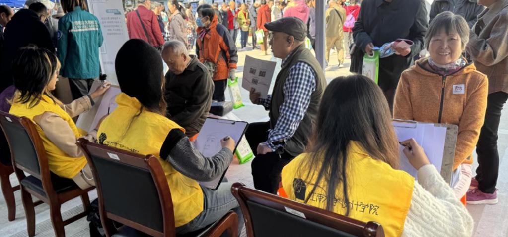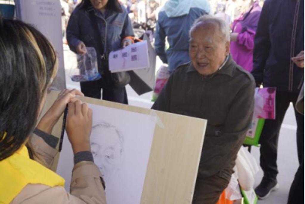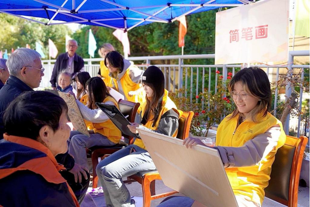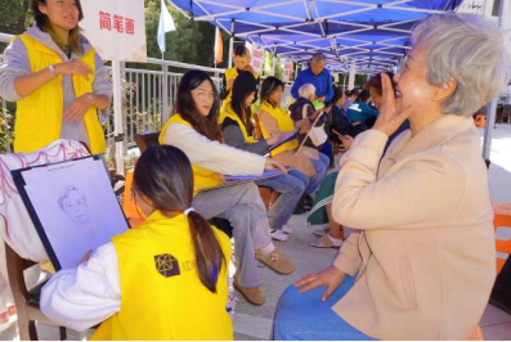 10月29日,重阳节当天,设计学院“益”起设计志愿服务团开展“丹桂飘香绘温情”百幅肖像志愿活动,用20分钟定格60年光阴,以专业所学向学校老一辈建设者致以节日敬意。