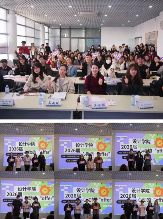 继心动的offer(美团专场)成功举办,10月29日,江南大学设计学院突破传统“招聘会”模式,再次开启招聘遴选活动——“心动的Offer(招聘会专场)。10名2026届毕业生现场展示项目,短短3小时便斩获16张“终试直通卡”,将企业单向输出升级为校企双向奔赴,把“岗位介绍”变成“实力选秀”。设计学院党委副书记副院长江琳娜、分团委书记兼学工办主任吴雨琛及毕业班辅导员张楠、张凌雁、滕影出席了活动,活动由毕业班辅导员张凌雁主持。