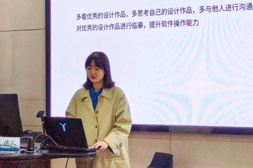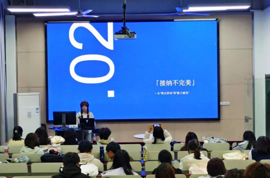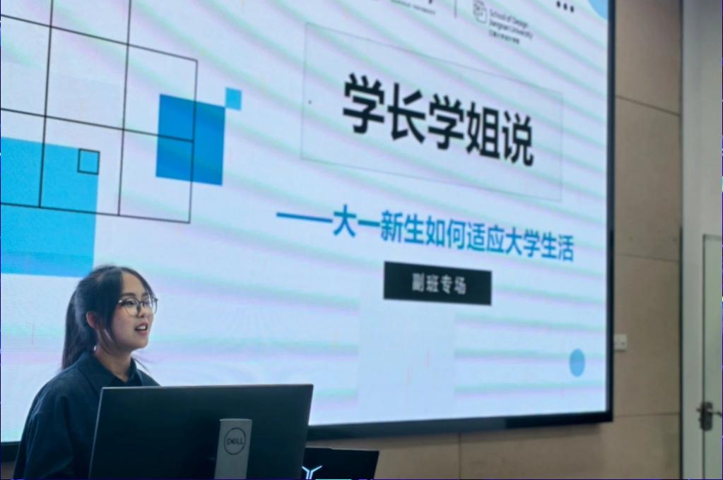 秋意正浓,青春正好。为帮助2025级新生更快适应大学生活,10月29日晚,设计学院学生会学促部精心策划的"学姐学长说"新生适应专场在温馨氛围中拉开帷幕。来自产品设计、视觉传达、环境艺术、公共艺术四个专业的优秀副班们齐聚一堂,用真诚的经验分享为初入校园的学弟学妹们点亮前行之路。产品设计2502的副班张泽璇学姐从拥抱白纸期、接纳不完美、坚持长期主义三个方面分享自身经历并总结经验。从刚入学时的迷茫无措,到通过持续练习获得认可,这是她不断锻炼能力,开发全面自我的过程。她用自己的经历告诉大家:"找到自己的方向和节奏,就算慢一些也终会到达。"