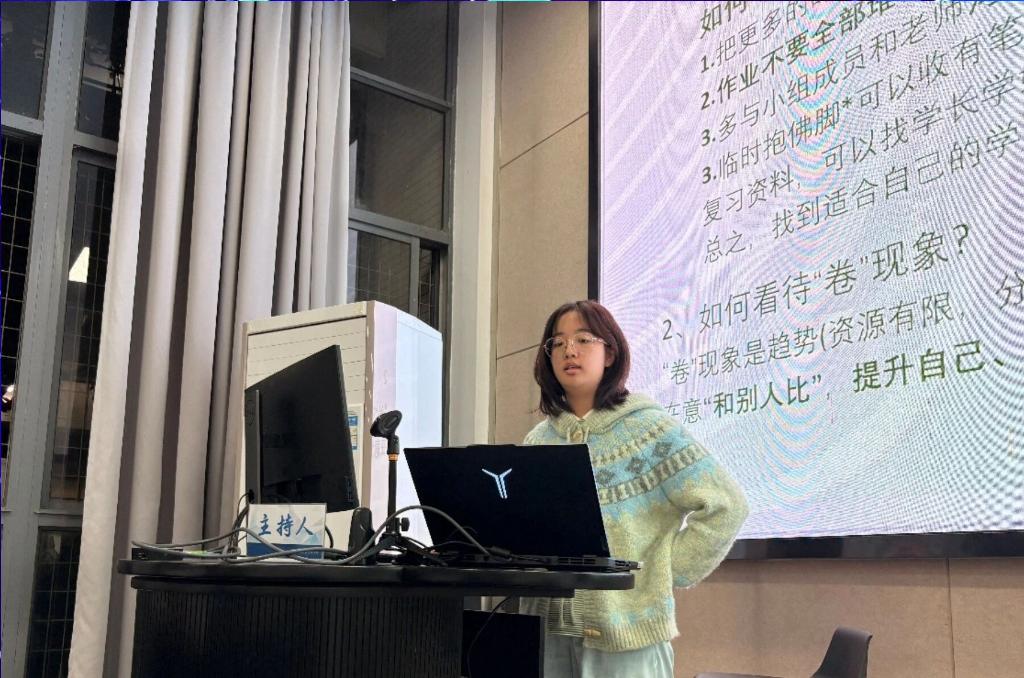 视觉传达的几位副班从不同角度带来精彩分享。视传2501班的副班盛舒逸学姐从专业学习内容、阶段核心到资源软件推荐,系统梳理了专业学习要点,并提出设计需要拥有设计热情,多思考,多沟通,多记录,持续性的努力更为重要,不可急于求成。视传2502班的副班徐思涵学姐聚焦心态调整,以学时为例生动阐释大学与高中的差异,分享多种缓解压力的方法,以心态心理方面为切入点。学姐强调因自己的喜好去选择最重要。视传2503班的副班周家乐学长则详细解读了综测与绩点的评定规则,为同学们的学业规划提供清晰指引。