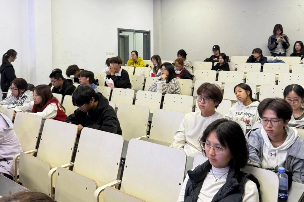 环艺2501班的副班闫涵学姐通过一段精彩视频点燃同学们对环艺专业的热情,随后系统介绍了环艺的学习内容、就业方向和学习方法。她特别强调课堂学习、课后巩固与实践探索相结合的重要性,鼓励同学们主动参与,绘制属于自己的成长蓝图。