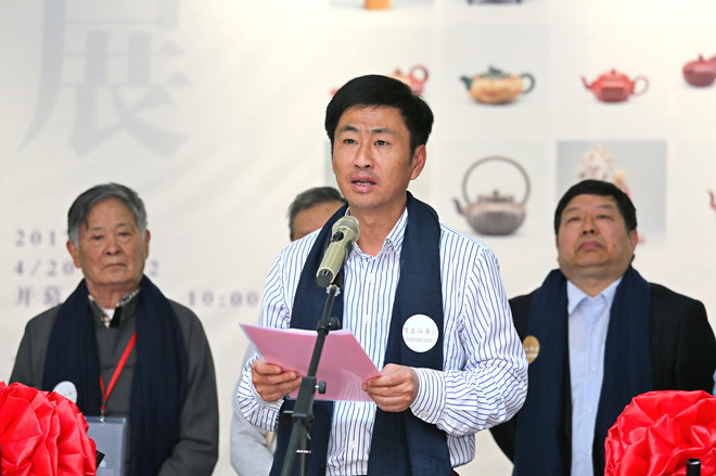 开幕前,张凌浩介绍了出席开幕式的13位参展大师,分别有徐秀棠先生、汪寅仙先生、顾绍培先生、毛国强先生、鲍志强先生、曹亚麟先生、吴鸣先生等等,其中8位为国家级紫砂大师,并特别感谢宜兴市紫砂工艺厂厂长徐建荣为本次展览给予的大力支持和江南大学原副校长王武为本次展览作序。