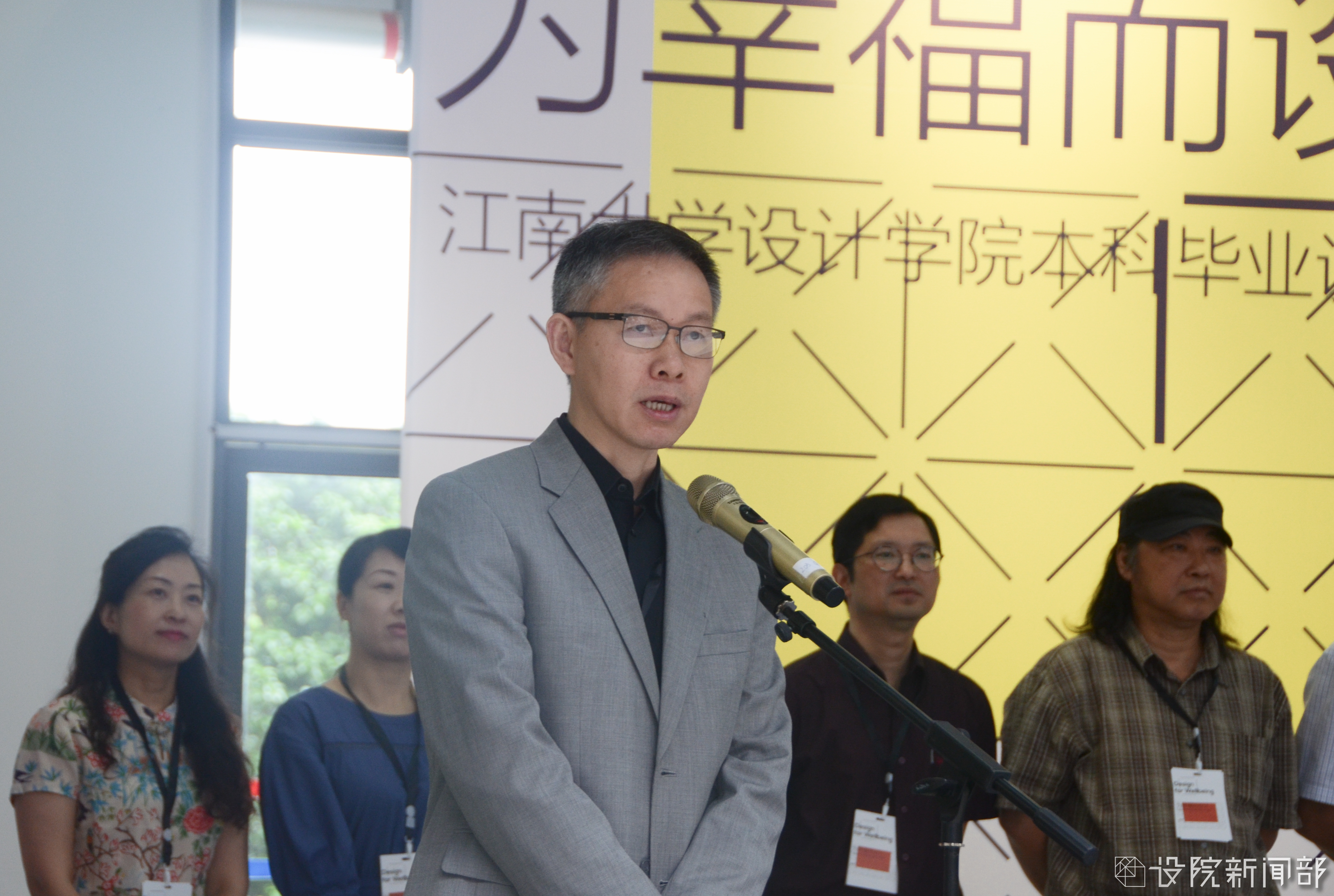 张凌浩提出,本次展览既是一次创新创业成果的汇报展示,也是一个专业研讨、自我审视与响应时代变革的绝佳机会。本次展览,取名为“Design for welling——为幸福而设计”,是希望同学们在社会变革的浪潮中,可以始终抱有设计的理想,不忘初心。设计师应始终怀有为美好世界而设计的愿景,为社会、环境与经济各种关系的更好的状态、更多的幸福感而设计。辛向阳教授发言表示,步入社会后同学们会发现有些学到的东西用不到,希望大家不要因此而彷徨,要坚定自己的设计理想,怀有对社会的责任感。不论在校期间同学们之间相处如何,毕业之后会发现最值得信赖的还是同学、师长,希望同学们不要忘记这份情谊,常回来看看。何晓佑致辞表示,江南大学设计学院的创新意识有口皆碑,一直是引领者的姿态,兄弟院校一直高度关注。培养出的学生不论是在是行业、企业、高校内都是引领者都有一批佼佼者。作为校友,祝福母校越办越好。梁元致辞表示本次展览不同寻常,充分展现出设院师生的创新意识。展览的顺利开幕有赖于校、院领导的高度重视,广大师生心血的付出,预祝展览成功,也祝福毕业生们前程似锦。2017届毕业生向芮仪作为学生代表发言,她深情回忆了四年来在学校的生活、学习场景,表达了毕业生们对老师的感激之情和对学院的留恋与不舍。