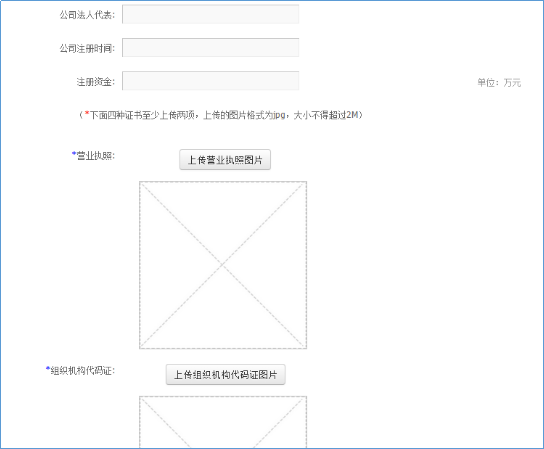 上图为填写认证资料部分截图,请填写完整张表格。注:(营业执照,组织机构代码证等副本图片,如果上传不成功,可以用QQ截图工具截图上传)
