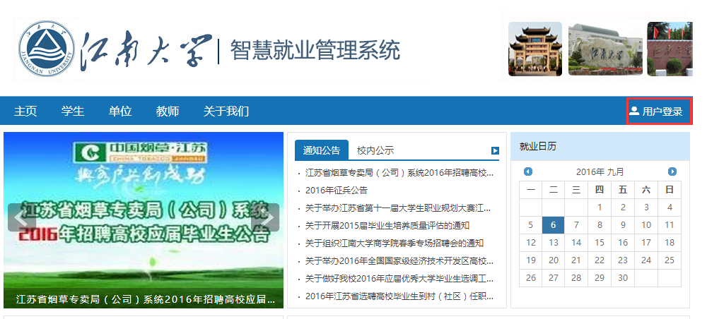 江南大学就业信息网实现了全省就业信息与资源共享、方便企业自助发布招聘信息(注册一次以后随时可以登录发布招聘信息、宣讲会等内容无需再发送营业执照、邮件等)。