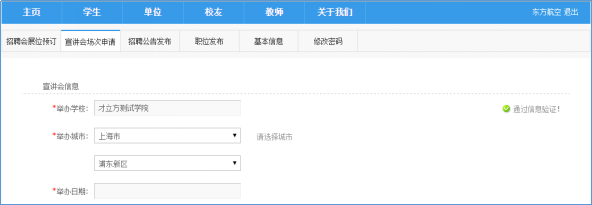 进入宣讲会申请页面,红框中内容比较特殊,举办时间和举办日期学校有可能改动,举办地点由学校安排,在宣讲会审核通过后需详细了解,以免弄错时间和地址。