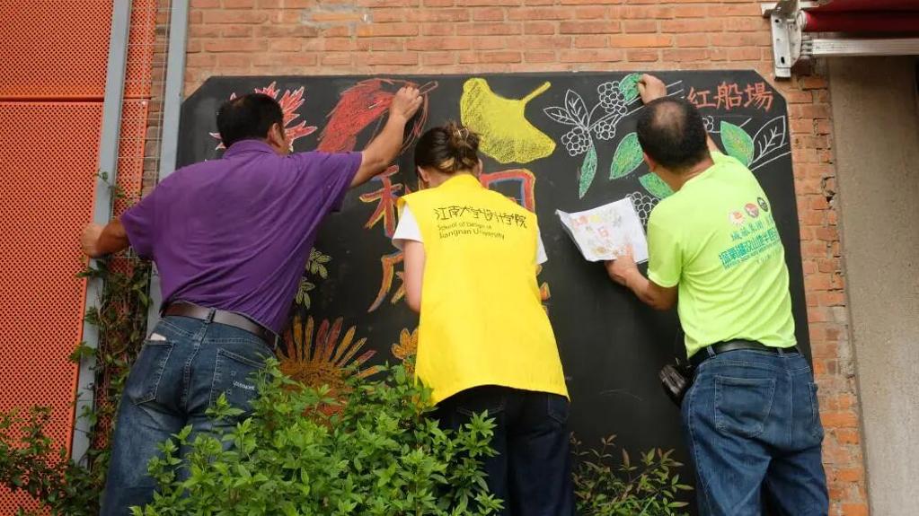 9月26日,江南大学设计学院益起设计志愿服务协会联合可益会在无锡红船场上演了一场充满爱与创意秋日风华” 主题黑板报绘制行动。4名设计学院志愿者与残友们一起用画笔勾勒美好、用陪伴传递温暖。