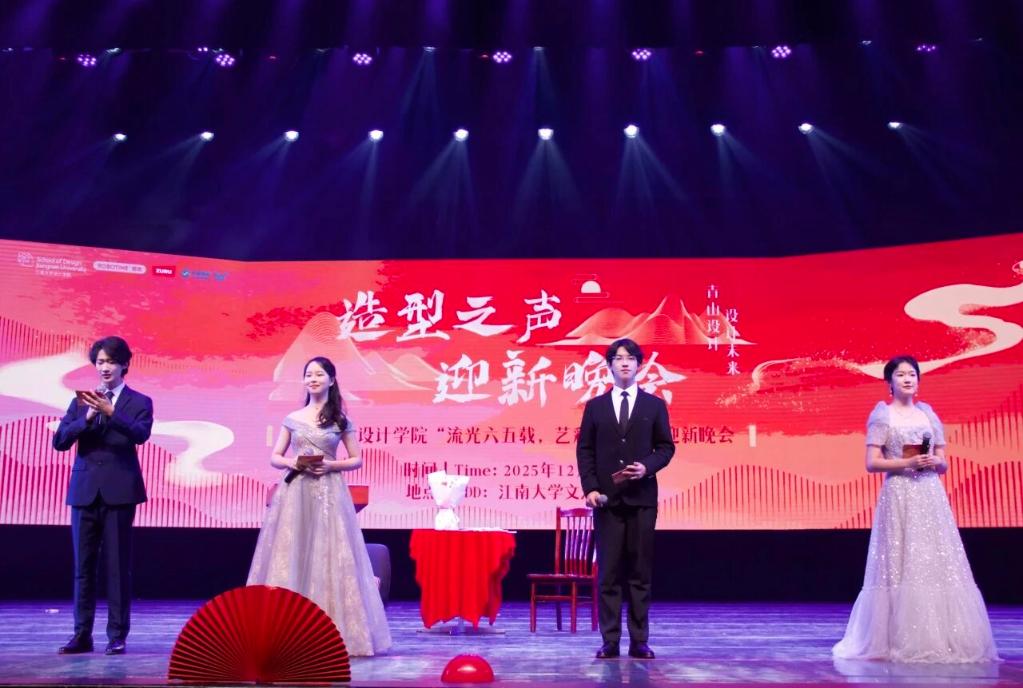 12月7日晚,文浩馆内灯光璀璨、掌声如潮,设计学院第45届“造型之声”2025迎新晚会在“流光六五载,艺彩映新辰”的主题氛围中温馨启幕。江南大学融媒体中心主任兼党委宣传部副部长单筱婷,无锡校友会会长谈建忠、秘书长谢璇、校友代表,设计学院党委书记王维青、院长魏洁、党委副书记兼副院长江琳娜、副院长廖曦、副院长周林、院长助理梁峭、教师代表、2025级全体班主任、辅导员及各学院师生代表齐聚一堂,共同参与了这场融合青春创意与人文情怀的视听盛宴。