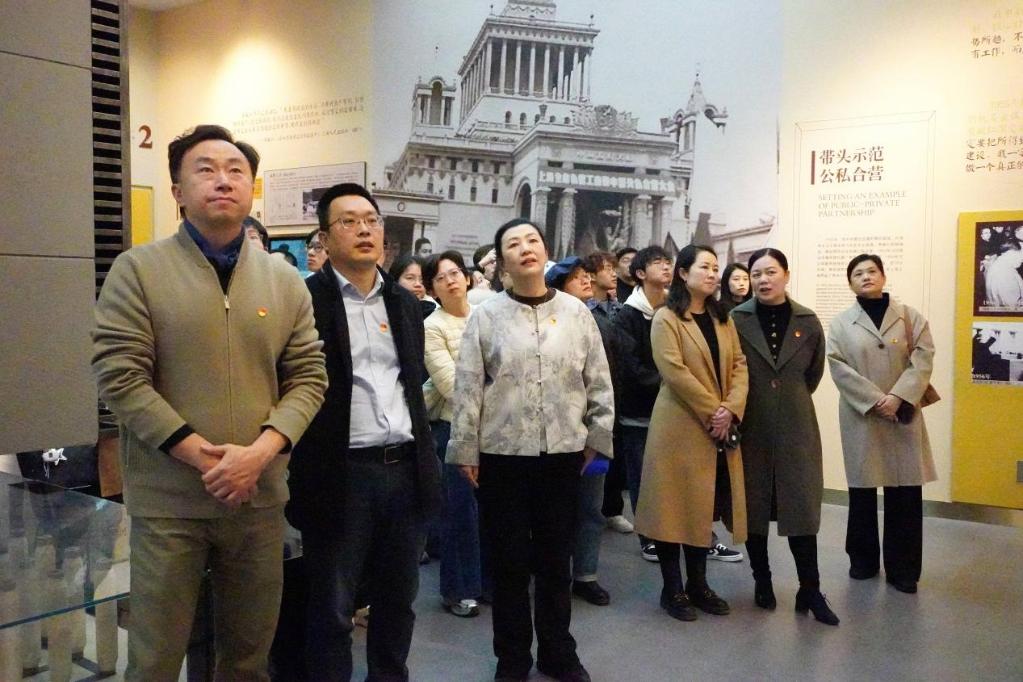当日下午,师生队伍怀着崇敬之心走进荣毅仁纪念馆。在讲解员的专业引领下,大家驻足凝视多媒体史料中的峥嵘岁月,细品珍贵文献里的赤子情怀,沉浸于场景复原的历史瞬间,系统回溯了荣氏家族 “实业救国守初心、诚信笃行担使命、支持革命显担当” 的百年红色征程。值此荣德生先生诞辰 150 周年之际,其 “教育兴邦、实业救国” 的远见卓识更显穿越时空的感召力,而荣毅仁先生 “胸怀大局、心系家国” 的责任担当,亦让师生们深切感受到锡商精神的核心要义。在一张张老照片、一件件老物件前,师生们轻声交流、深刻感悟,清晰梳理出荣氏家族与江南大学 “因教结缘、因志相守” 的历史脉络 —— 从先生捐资助学、兴办教育的初心,到学校赓续文脉、育人为本的使命,红色基因早已深深镌刻在校史年轮中。作为双带头人党支部践行党建引领的生动实践,此次参观以诞辰纪念为契机,让师生在追溯校史根脉中,将锡商精神与党员初心使命紧密相连,为赓续红色血脉、筑牢信仰之基注入了强劲的精神力量。